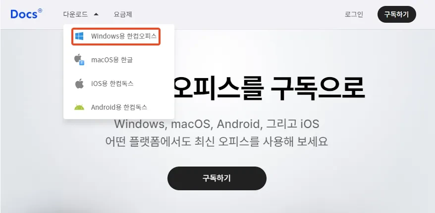 - 공식 웹사이트 방문 : 한글과 컴퓨터 다운로드 페이지로 이동합니다.