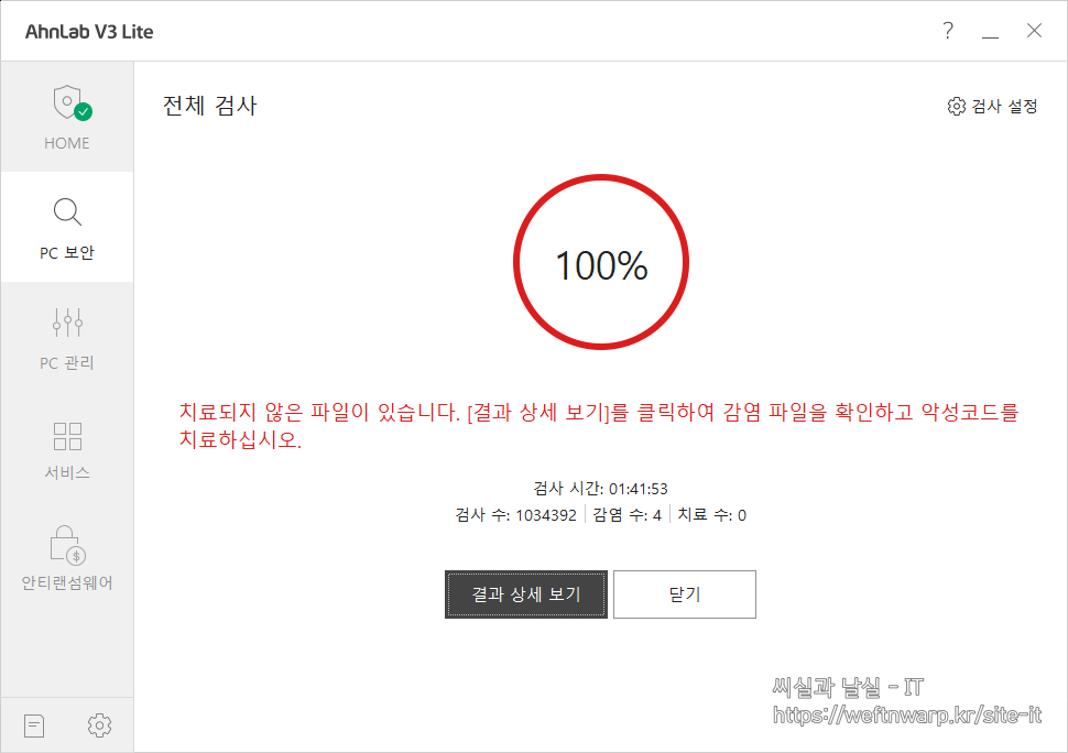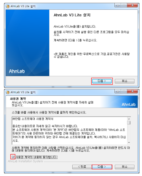 이렇게 간단한 과정으로 V3 Lite를 설치할 수 있습니다.