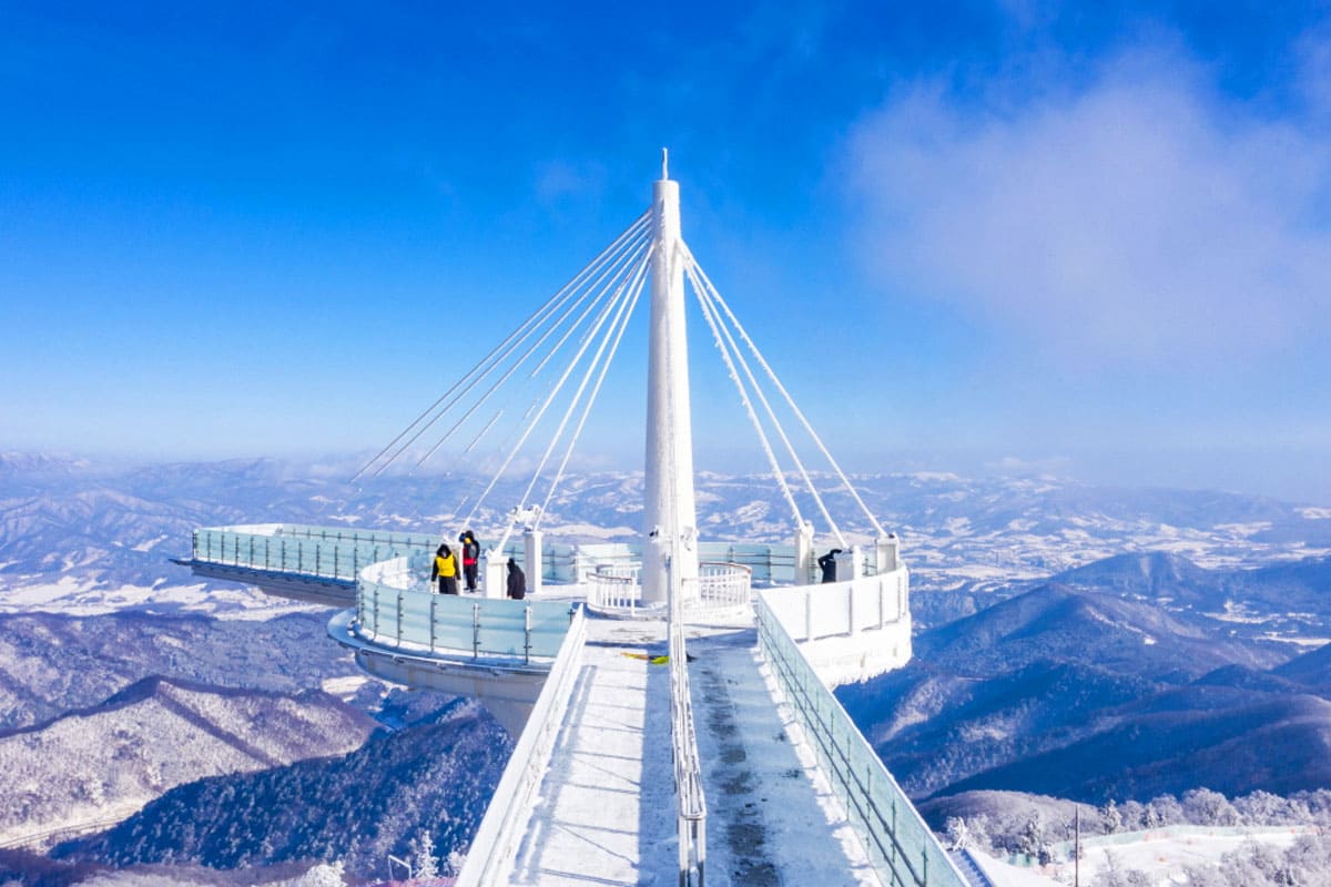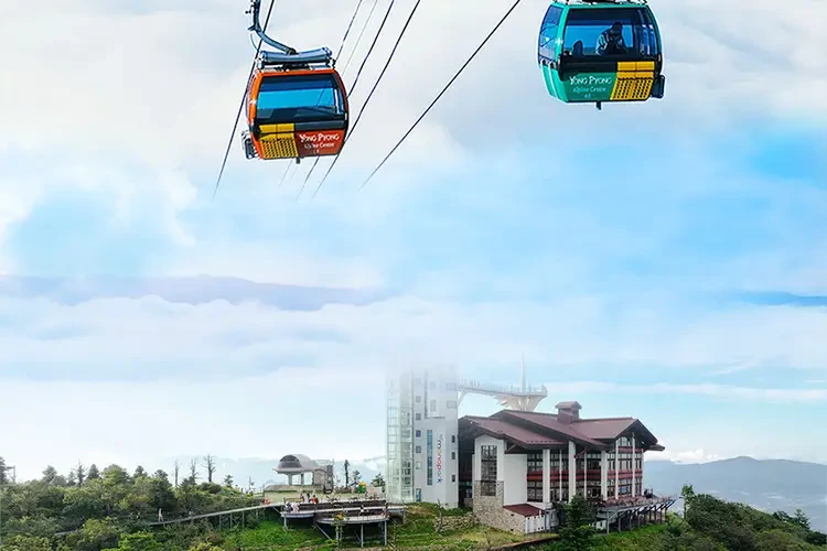 발왕산 케이블카는 평창의 대표적인 관광 명소 중 하나로, 해발 1,458m의 발왕산 정상까지 연결됩니다.