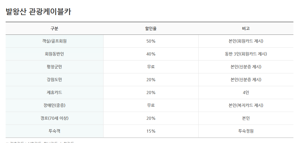 발왕산 케이블카는 사전 예약을 통해 할인 혜택을 받을 수 있습니다.