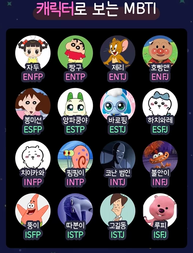 예를 들어, 'INTJ'는 내향적이고 직관적이며 사고 중심적이고 판단적인 성격을 의미합니다.