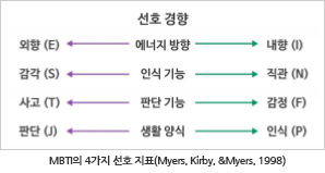 이 검사는 개인의 성격을 외향성(Extraversion)과 내향성(Introversion), 감각(Sensing)과 직관(Intuition),