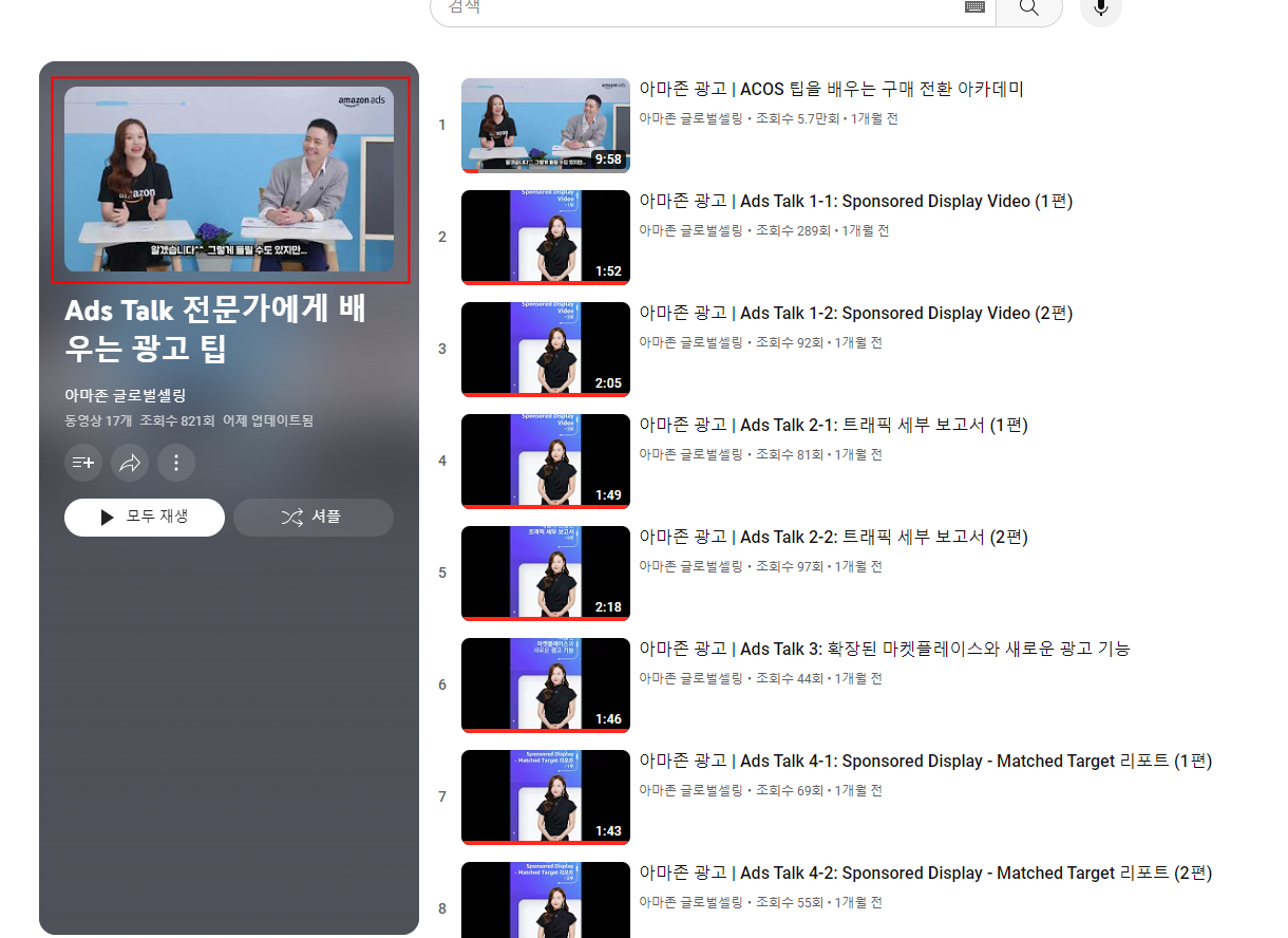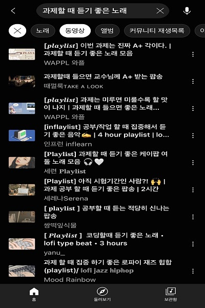 검색창에 원하는 키워드를 입력하면 관련된 동영상 리스트를 쉽게 확인할 수 있습니다.