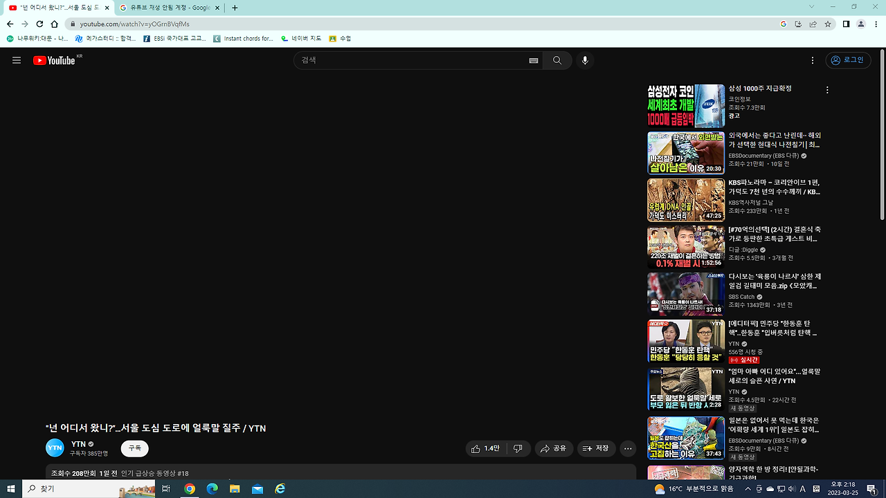 - 엔터키를 눌러 유튜브 홈페이지로 이동합니다.