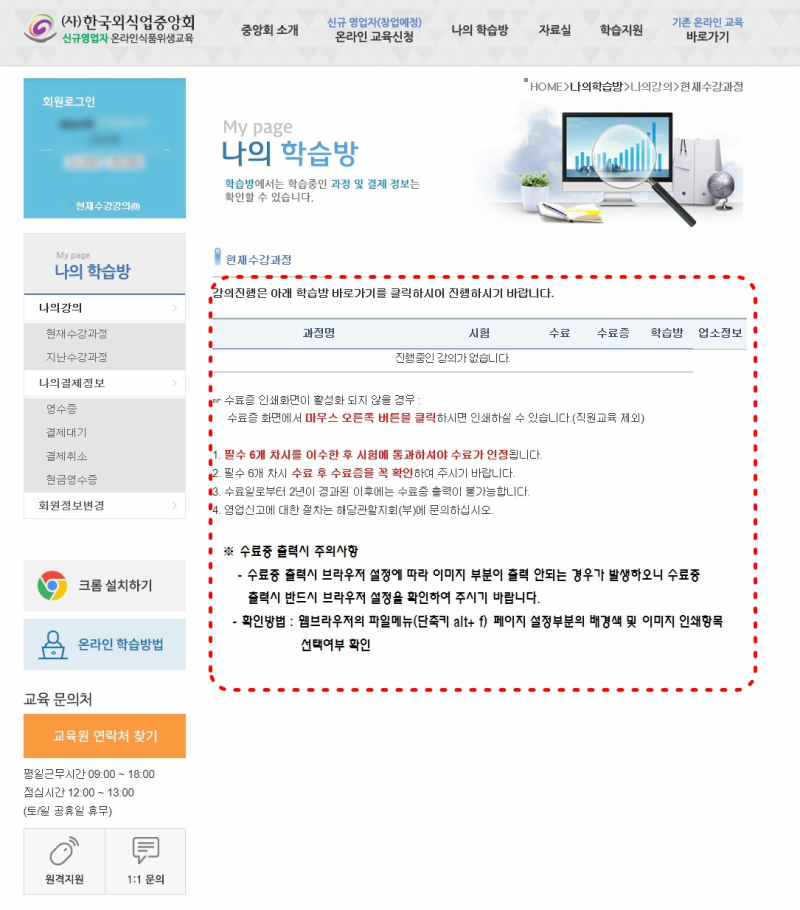 한국외식업중앙회 온라인 교육 과정