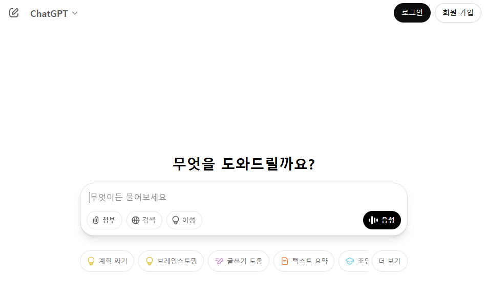여기서 원하는 질문이나 요청을 입력하면, ChatGPT가 즉시 답변을 제공합니다.