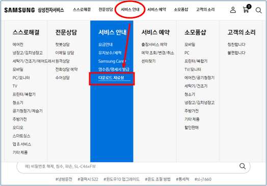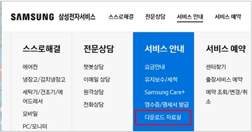 - 다운로드 자료실 선택 : '다운로드 자료실'을 선택하여 들어갑니다.