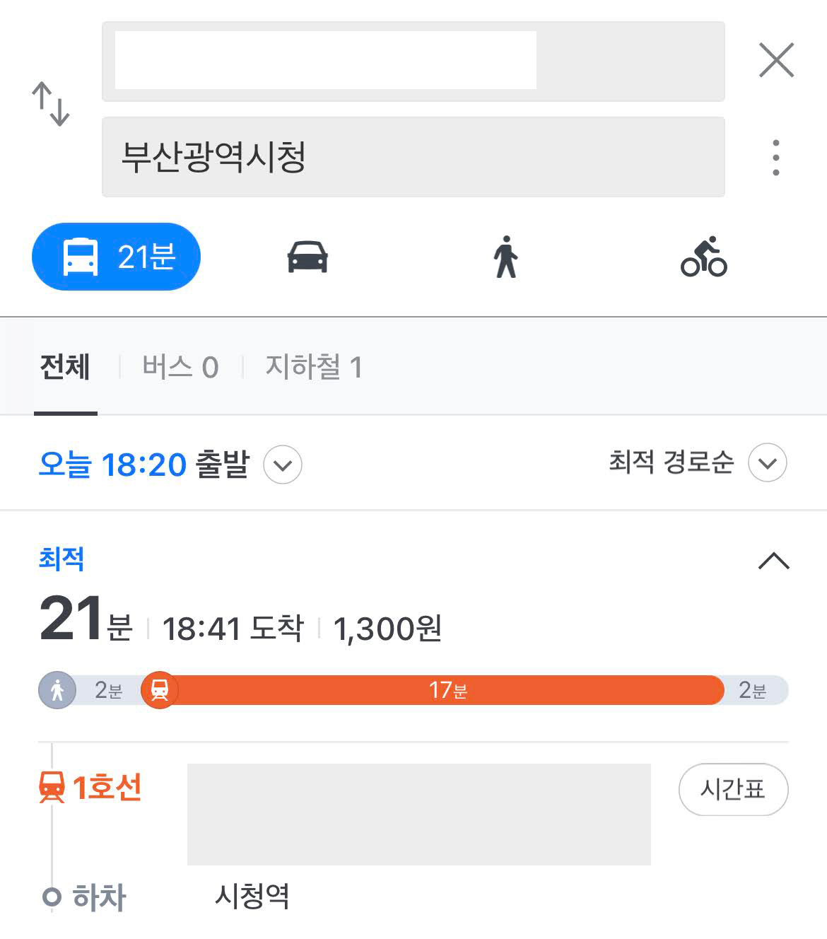 - 검색 결과에서 원하는 출발지와 도착지를 선택합니다.