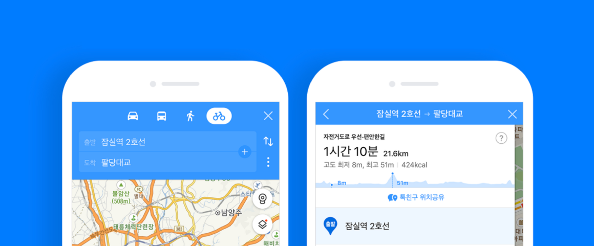 - 다양한 교통수단 지원 : 자동차, 대중교통, 도보 등 다양한 교통수단에 맞춰 경로를 안내합니다.