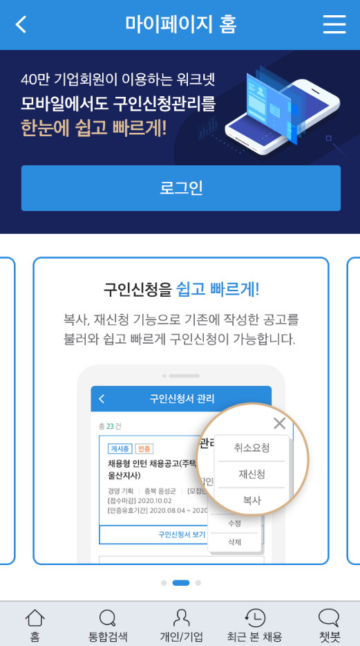 구직자는 이곳에서 다양한 채용 정보를 확인하고, 구직 등록을 통해 취업 지원을 받을 수 있습니다.