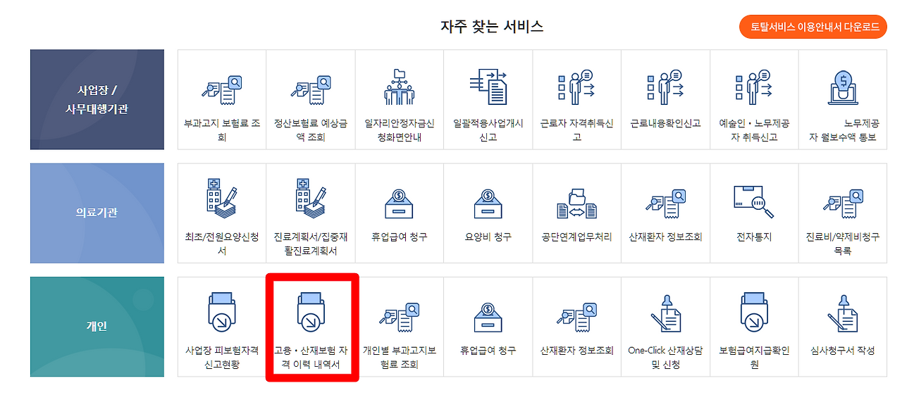 - 고용보험 가입 이력은 어떻게 확인하나요? 고용보험 가입 이력은 고용산재보험토탈서비스(total.comwel.or.kr)에서 확인할 수 있습니다.